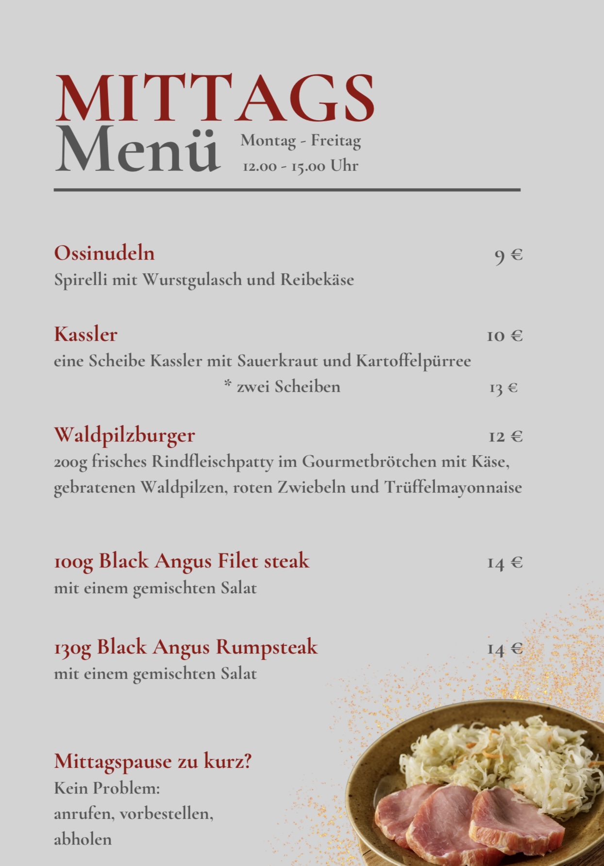 Wir bieten Abholservice für Speisen & Fleisch vor Ort an.